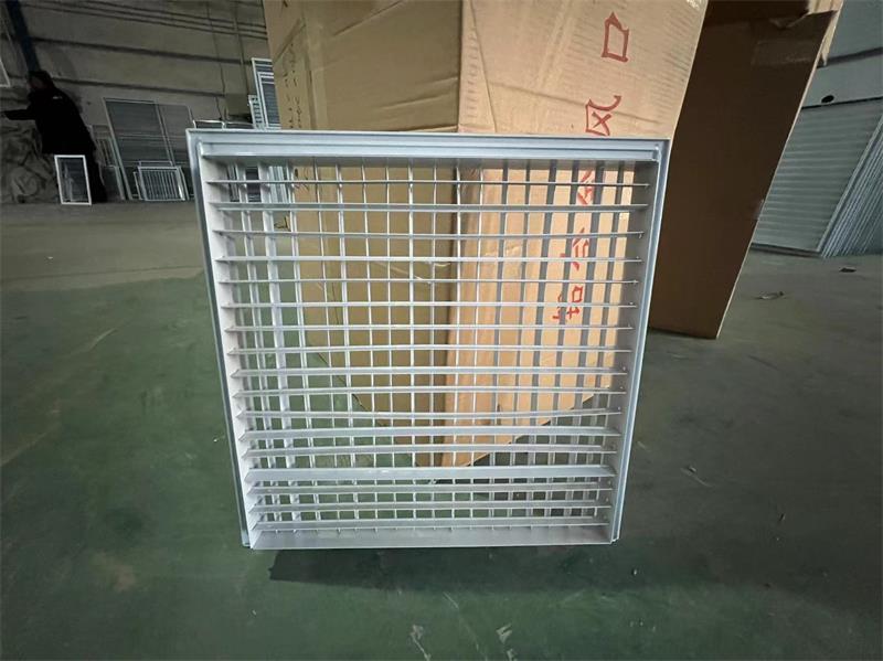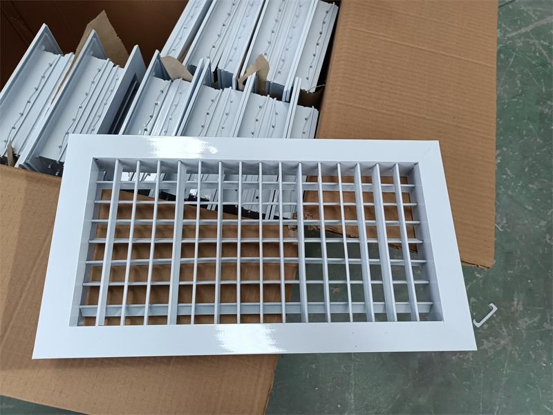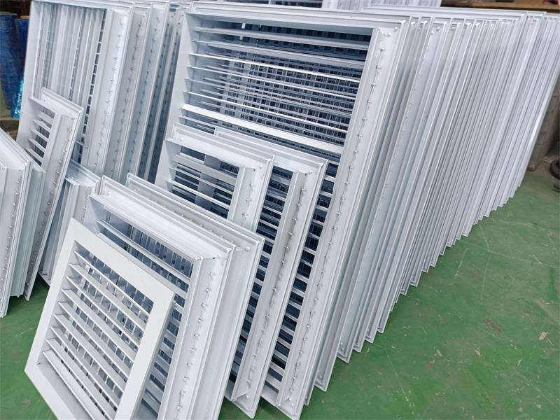 The double-layer grille air vent is a double-layer adjustable louvered air outlet. This series of air vents can be directly used with fan coil units or as a terminal unit in air conditioning systems. The two layers of blades are arranged in a cross-combination, and the blade angle can be adjusted arbitrarily within the range of 0°-180°. Different blade angles can be adjusted to achieve different air delivery distances and diffusion angles. A regulating valve can be added to the rear of the air vent to control the airflow and velocity within an appropriate range. The aluminum alloy air vent surface is anodized, and electrostatic powder coating can also be applied upon request.