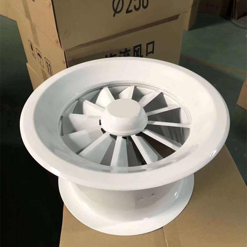 The VDL swirl air outlet is a new generation product featuring long-distance air delivery (cooling and heating), low noise, and ease of use. Indoor spaces with fluctuating heat loads often require the delivery of cool, isothermal, or hot air as needed. The VDL series swirl air outlets allow for optimal air delivery by adjusting the airflow angle, whether for cooling or heating. It has a circular outer frame and adjustable swirl blades inside. With an air delivery depth ≥3.8mm, it can be widely used in industrial plazas, airports, theaters, bank lobbies, stadiums, and other locations, and is especially suitable for places with significant temperature differences in the delivered air.
